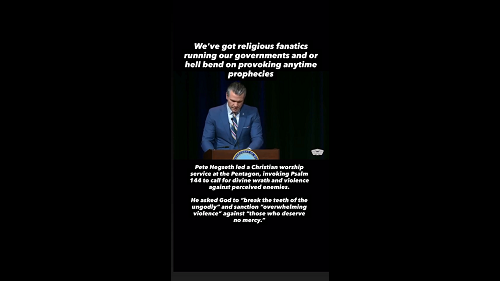 Peter Hegseth reads prayer for Overwhelming Violence of action to the U.S. Military